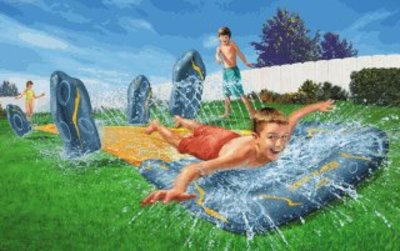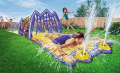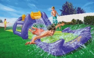 Hi, beste mensen! Een dag later dan gebruikelijk, maar in het huis waarvan ik een kamer bewoon is een ravage ontstaan, waaraan ik gisteren tot diep in de nacht m'n handen vol had. Ik heb ruim honderd emmertjes water moeten scheppen, maar daarover later meer. Als rechtgeaarde gadgetwatcher kijk ik altijd een half jaar vooruit. De kerstgadgets liggen nu in de winkels ('een echt plassende kerstmanpop'!) - ik richt mij op de zomer. En ik heb beet...! Een Amerikaanse firma, die ik in Europa ga vertegenwoordigen, brengt de ultieme waterglijbanen uit. (Ze steggelen alleen nog over mijn voorschot van 20.000 dollar en mijn 20% fee per glijbaan, maar dat is peanuts.) Dit wordt het zomervermaak van 2003! Neem de Big Splash. Als je daar met een noodgang over aan komt glijden, krijg je onderweg een paar emmers water over je heen. Lachen! De Super Geyser. Aan het eind van de rit activeer je zelf een paar enorme spuiters! Big fun! De Asteroid Bowling. Mijn favoriet. Er gebeurt niet zoveel, maar je glijdt langs een paar opblaasbare spacerotsen en dat moet een out-of-the-world-sensatie zijn. Ik heb de proefmodellen in huis en gisteravond kon ik mijn nieuwsgierigheid niet bedwingen en heb ik de Asteroid Bowling uitgerold en opgeblazen. Ik heb er maar een paar afwasteiltjes water in gedaan en ik heb even in m'n zwembroek een stukje proef gegleden... meesterlijk! Okay, ik raakte natural high en een beetje oververhit en ging door. Tot die burgerturf van een onderbuurman kwam klagen dat het water langs z'n muren droop. Nou ja. De boel moet nu drogen en ik ga straks met een bosje bloemen bij 'm langs. Tot gauw, jullie Driek