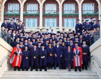 Zo staan ze vandaag weer in alle kranten: de afgestudeerde Masters of Business Administration, 2002. Daaronder een lange lijst namen - van mevrouw Van den Akker tot en met de heer Van Zweden. Hartelijk gefeliciteerd, dames en heren, met het behalen van uw graad. Graad? Ja, dat zou je denken. Met die mantels en petjes lijken ze wel te poseren op de trappen van de Universiteit van Oxford. En die heren in die rode habijten met die baretten op, zijn dat echte professoren? Welnee. De afgestudeerden werken al jarenlang in een goede managementbaan, maar hebben nu, na veel geploeter in hun vrije tijd, certificaten gekregen van de Action Learning Business School, 'die een daadwerkelijke bijdrage leveren aan hun professionele en persoonlijke groei'. Fijn. Geluk ermee. Mag men de mantels en petjes mee naar huis nemen? Heeft men die zelf moeten betalen? Zijn ze op maat gemaakt? Worden ze thuis aan de kapstok uitgehangen, zodat bezoekers denken: 'Potdikke! Ik ben hier bij een gestudeerd iemand op visite!?'
