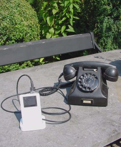 groter. Ouderwets bakeliet. Zo'n hoorn aan je
