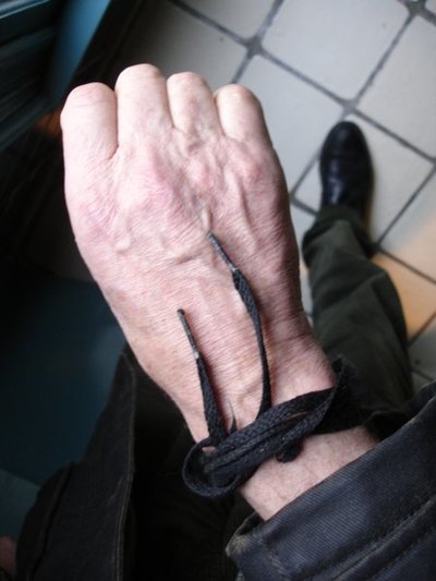 Hoi mensen, Tijd niks van me laten horen. Dat komt: het is me niet in de kouwe kleren gaan zitten, alles wat er is gebeurd. En om dan gewoon door te gaan met het signaleren van leuke hebbegadgets... het stuitte me even tegen de borst. En nog denk ik dagelijks: wat kan ik, wat kunnen WE doen aan de hele toestand, opdat het niet uit de klauw loopt en onze hele maatschappij naar de kloten gaat. Nou zijn er allerlei initiatieven genomen, van concerten, wandeltochten, het uitdelen van bloemen en het bij elkaar komen voor debat, maar het meest in de kijker loopt het oranje polsbandje. Kom je toch een beetje op mijn terrein. En ik weet het niet met dat bandje... Er staat 'Respect2All' op gedrukt en dat is wel heel erg bij de tijd, maar je kan ze kopen voor 1 euro bij de ABN AMRO-filialen en in diverse supermarkten. Er zijn er 1 miljoen in China gemaakt, lees ik. En zestig cent komt ten goede aan 'doelen die respect bevorderen'. Ja, sorry, het zal wel goed zitten, maar mijn vraag luidt: moet het zo ingewikkeld om respect te tonen? Kan dat niet wat eenvoudiger? Dacht het wel. Idee: het veterbandje! Trek een veter uit een van je schoenen (heb je 1 paar, dan loopt het wat moeilijk), bind dat om je pols et voila: het simpelste, goedkoopste teken van respect ever! Als je er even over nadenkt struikel je over de symboliek. De veter brengt hand en voet bij elkaar... De veter houdt ons allemaal gaande, van welke afkomst, of geaardheid je ook bent... Je hebt lange, korte, witte, bruine en zwarte veters - ze dienen alle hetzelfde doel... En zo zou ik nog een tijdje door kunnen gaan. Door elkaar je veter te tonen geef je ook aan van: of je mij een hand geeft of niet, of ik, als ik jouw huis binnenga m'n schoenen d'rbij moet uittrekken, of dat ik ze mag aanhouden - het maakt geen fuck uit: ik toon jou respect en daar gaat het om. Is dit wat? Ik loop toch een beetje met het tevreden gevoel rond dat ik wat heb gedáán! Mocht het veterbandje een hype worden en d'r duiken handige piechems op die speciale veters in China gaan laten maken die voor 1 euro bij de banken zijn te krijgen, weet dan dat mijn oorspronkelijke idee, zoals gewoonlijk, op schandelijke wijze weer 's werd verkracht. In de hoop op respect, jullie Driek