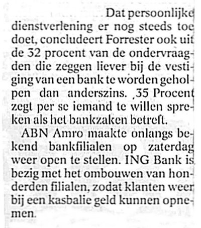 En als de verbouwingen achter de rug zijn en de balies weer terug, mag dan het toentertijd ontslagen personeel ook weer worden aangenomen? Graag zagen we Leone weer achter balie 1, en zij met die donkere pony, kom, hoe heette ze ook alweer bij balie 2 en meneer Rob bij de reisverzekeringen.