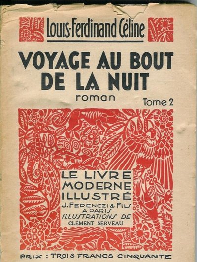 En ik scoorde voor vijf euro meteen iets bijzonders: deel twee van een soort goedkope volksuitgave van Reis naar het Einde van de Nacht, het meesterwerk van Louis-Ferdinand Céline. Een eerste druk uit 1935! Ik ga op internet uitzoeken of ergens deel een te koop is.