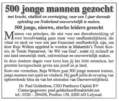 4. Of weet u helemaal niet dat de zorgverzekering vanaf 1 januari 2006 heel anders geregeld gaat worden? Dan bent u collectief verzekerd met een 'Gods Water over Gods Akker-pakket'. U krijgt er gratis de aanvullende 'Als De Hemel Valt Hebben We Allemaal Een Blauwe Hoed Op-polis' bij.