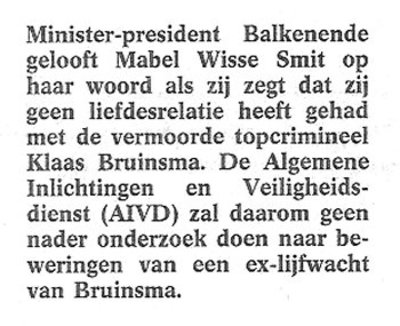 Geloven op het woord - MP Balkenende verloochent zijn gereformeerde afkomst niet, maar is daarmee niet van deze wereld. Het gaat om topcriminaliteit, Jan Peter! Nu de vraag of Mabel vree met Klaas zo'n belangrijk politiek issue is geworden, dient DNA-onderzoek ingezet. Bezit Mabel Wisse Smit nog zeilkleding uit haar Bruinsma-tijd? Kan Klaas Bruinsma worden opgegraven?