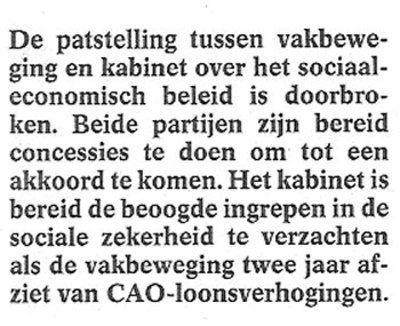 Dat het centrum-rechtse kabinet de werkgevers zou bevoordelen, wordt door dit bericht gelogenstraft. Minister De Geus heeft besloten tot de zwaarste sanctie voor werkgevers die de afspraken schenden: zij moeten zich schamen. In werkgeverskringen is grote beroering ontstaan. 'Een veel te zware straf', is de veelgehoorde klacht. Werkgevers die zich moeten schamen, verliezen niet alleen hun zelfrespect, maar vaak ook hun op schaamteloosheid gebaseerde machtspositie binnen de top van hun bedrijf. Werkgeversorganisaties overwegen heftig te protesteren tegen het besluit van De Geus. Het ontbreken van een tijdslimiet is hen een doorn in het oog. Hoe lang moeten de gestrafte werkgevers zich schamen? Een week? Levenslang? Vanmorgen moeten de eerste tot schaamte veroordeelde werkgevers zich op hun bedrijven vertonen. Met borden om hun nek, waarop staat geschreven : Ik schaam mij! Ook zijn ze verplicht het voltallige personeel toe te spreken, waarbij zij in hevig gehuil en gesnik dienen uit te barsten. Japanse toestanden.