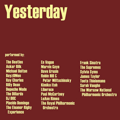 Een site met een mp3, waarop 27 covers van Yesterday tegelijk ten gehore worden gebracht. Het Lied van de (vorige) Eeuw. Maker: kunstenaar Jason Salavon.