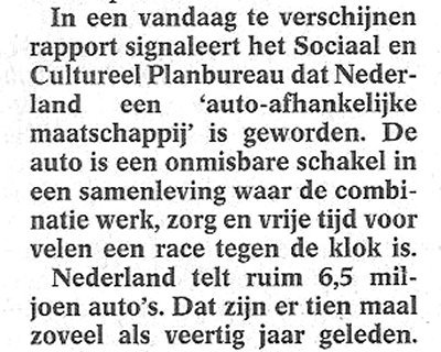 Vervolg op het stukje 'Permanent autoloos' van vanmorgen.