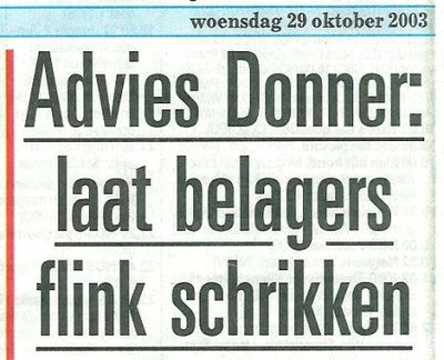 Er lopen tientallen overheidsdienaren in Nederland rond, met verzwegen informatie over zaken die nadelig kunnen uitpakken voor hun medeburgers. Laten we een amnestieregeling afspreken. Tot en met 31 december 2003 worden zij in de gelegenheid gesteld over de brug te komen. In de hallen van ministeries, gemeentehuizen en andere overheidsgebouwen dienen biechtstoelen te worden neergezet, waarin de ambtenaren hun zwijgen kunnen doorbreken. Als zij na 1 januari 2004 tegen de lamp lopen - zoals nu de heer Wellink van de Nederlandsche Bank - worden zij op staande voet uit overheidsdienst ontslagen. (Wat mij betreft hoeft de heer Wellink maandagochtend aanstaande al niet meer op zijn werk te verschijnen.)