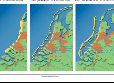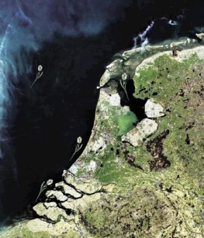 Onze baggeraars zijn wereldberoemd en dat willen ze weten. Zo hebben ze onlangs bij Dubai driehonderd eilanden opgespoten 'in de vorm van de werelddelen'. Het is onze baggeraars in de bol geslagen. Valt er nog wat te spuiten? Nu willen ze voor onze kust niet één tulp maar een hele bos opspuiten. Of eilanden langs de hele kust neerleggen, van Zeeland tot en met de Wadden. Bij wijze van visitekaartje. Zodat onze baggeraars elders in de wereld meer grote opdrachten kunnen binnenhalen. Balkenende staat op knappen zo trots. Moet je die kaartjes zien. De baggeraars willen de horizon wegspuiten. Dit is geen horizonvervuiling meer, maar horizonvernietiging. Willen we dat? Kijk ook eens naar het filmpje van het Innovatieplatform. Wat een gebral!