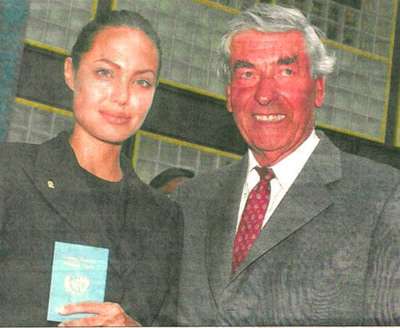 Bij het Algemeen Dagblad hebben ze er vandaag werk van gemaakt. Bij hun artikelen over de affaire Lubbers op pagina 3, is een foto geplaatst (uit 2001: de hoge commissaris van de UNHCR verwelkomt VN-ambassadeur Angelina Jolie) waarop de heer Lubbers eruit ziet als 'the devil in disguise'. De foto moet kennelijk bewijzen dat Lubbers in de nabijheid van mooie vrouwen niet helemaal goed wordt. We voelen nattigheid. Op dezelfde pagina ziet AD-columniste Jacobine Geel er ook al uit alsof ze 41 graden koorts heeft. Te vrezen valt dat iemand op de drukkerij 'per ongeluk' de kraan met rode inkt iets te lang heeft open laten staan.