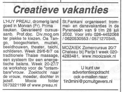 Zijn uw te kleine handjes u een doorn in het oog? Behoren grote, eerlijke 'kolenschoppen', of artistieke, langvingerige pianohanden tot uw droomwensen? KLINIEK MANUELA voor palmvergroting en vingerverlenging In vijf weken geven wij u volgens de methode van doktor Siebolt Schlugt uit Berlin betere handen. Handen waarmee u andere handen durft drukken. Handen die u zonder gêne kunt laten wapperen. Geen operaties! Door middel van pletting en rekking vergroten wij de handafmetingen op natuurlijke wijze. Ook 'natte handen' behoren na onze handbehandeling definitief tot het verleden. Desgewenst voeren wij gelijktijdig een levenslijnenreconstructie uit, d.w.z. wij verleggen met laserstralen uw ongunstige levenslijnen, zodat u een langer en gelukkiger leven in het vooruitzicht kan worden gesteld. Uw handen zijn bij ons in 'goede handen'. Kliniek Manuela, Driekempenstraat 134", Oudeluffel. Alleen op afspraak na persoonlijk bezoek.