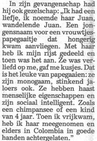 Vraag aan de Volkskrant: ik herinner me een krantenbericht (in februari, of maart?) waaruit bleek dat Pim Fortuyn in zijn Rotterdamse woning bezoek had gekregen van de Amerikaanse ambassadeur, vergezeld van enkele hoge Amerikaanse militairen, met het doel Fortuyns negatieve mening over de JSF positief te beïnvloeden? Ik vind dit bericht nergens terug. Wie organiseerde dat bezoek? Wat was het resultaat? Als 1-manskrant heb ik niet de middelen dit tot op de bodem uit te zoeken. Ik kan hooguit een verband leggen met prins Bernhard, maar daar schiet niemand iets mee op.