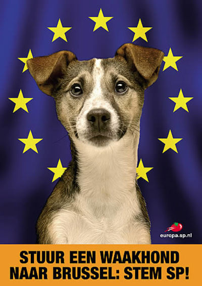 Kiezers die zich in hun keuze voor een bepaalde politieke partij laten leiden door beeldtaal, kunnen bij deze verkiezingen in ernstige verwarring geraken. Bij een vluchtige beschouwing ligt het voor de hand de poster met het schrandere koppetje van het schattige hondje toe te schrijven aan de Partij voor de Dieren. Daardoor zou de SP wel eens ten onrechte stemmen kunnen winnen onder potentiële stemmers voor de Dierenpartij. Is het mogelijk een klacht in te dienen bij een verkiezingsaffichecommissie? De Partij voor de Dieren koos een foto van haar lijsttrekster als aandachtspunt. Een mooi hoofd heeft mr. Marianne Thieme. Maar wat is het verband met het Europese dierenbeleid? Hooguit wordt nu slechts ongewenst machocommentaar opgewekt in de trant van: 'Wat een lekker dier is dat, zeg!'. De Partij voor de Dieren had er beter aan gedaan een lief poesje op haar affiches te plaatsen. En het zou de SP duidelijk moeten worden gemaakt dat zij de kiezers niet moet schofferen met posters voor de kinderkamer.