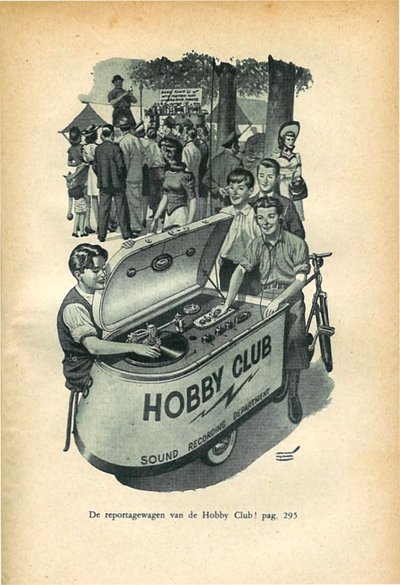 Het antiquariaat is gevestigd in een oud, vergeten pandje, dichtbij de Amsterdamse Haarlemmerpoort, grenzend aan een kaal landje en een spoorviaduct. In de etalage staat het boek opgesteld dat ik onmiddellijk wil hebben. Op de deur hangt een bordje GEOPEND, maar ik moet herhaald kloppen voor de oude eigenaar naar voren schuifelt en de voordeur van de sloten haalt. Het boek is snel gekocht: voor 9 euro krijg ik een eerste druk (1947) van 'De Jongens van de Hobby Club' mee in een plastic zak van een buurtsupermarkt. De serie Hobbyclubboeken van Leonard de Vries, die in de jaren vijftig leidden tot het oprichten van hobbyclubs in het hele land, waar jongens en meisjes o.a. zelf geluidsfilms en radio maakten, is als fenomeen het bestuderen waard. Maar waar het mij om gaat zijn de illustraties van de hand van Johnny Hummel. Als jongen was ik een groot bewonderaar van zijn realistische, 'Amerikaanse' tekeningen. Hij heeft tientallen boeken, maar ook jeugdbladen geïllustreerd. Veel van zijn tekeningen kan ik uit het hoofd beschrijven, zo intens heb ik ze destijds bestudeerd. Wie was Johnny Hummel en hoe komt het dat hij halverwege de jaren vijftig van de aardbodem lijkt verdwenen? Internet geeft na herhaald zoeken geen opheldering. Graag zou ik de vergeten tekenaar Johnny Hummel de eer geven die hem toekomt en hem plaatsen in de rij van Grote Nederlandse Illustratoren.