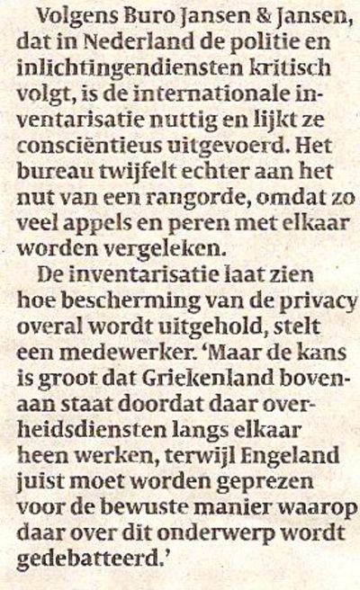 Vandaag is het weer 's te lezen: in een krantenartikel over het onderzoek naar de privacybescherming in vele landen (Nederland bungelt onderaan), wordt getwijfeld aan het nut van zo'n inventarisatie omdat 'appels met peren worden vergeleken'. We spreken met onderzoeker dr. Nak de Weert.