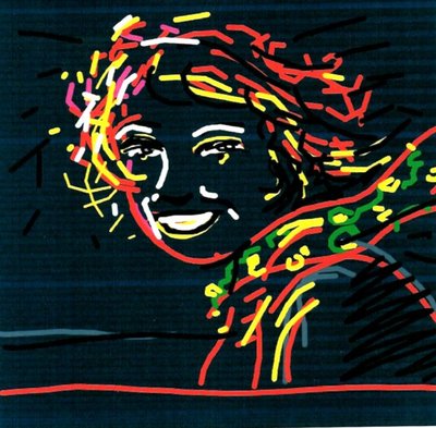 Woensdag jl. gaf ik een speeltje door - een stift, waarmee tekeningen op het pc-scherm zijn te maken, waarna ze per e-mail kunnen worden doorgestuurd. Stuur een tekening naar Bieslog, vroeg ik u. Ik loofde een DVD uit voor de beste, me excuserend voor het enigszins infantiele karakter van deze prijsvraag. De inzendtermijn sloot gisteravond en ik ontving 190 tekeningen. Ik heb ze met het grootste genoegen bekeken, want het leuke van het speeltje is niet het resultaat, maar het feit dat elke tekening na opening van de e-mail van begin tot eind wordt opgebouwd. Je ziet de maker aan het werk. De stift schoot 190-maal over mijn scherm. Aarzelend, priegelend, of woest kwastend. Veel cartooneske koppen, bloemen, vlinders, bootjes, fantasiedieren, boodschappen en goede wensen. 'Wat moeilijk!', verzuchtte menigeen. Volgens de jury stak Bart met kop en schouders boven alle inzendingen uit. Hij maakte gebruik van alle mogelijkheden - kleuren en achtergrond - en leverde twee schilderijen, die met trefzekere hand en zichtbaar plezier op het scherm werden gestift. Als Bart mij zijn adres mailt, stuur ik hem de DVD TerugKeek op de Week. De eervolle vermelding is duidelijk van de hand van een professional (deelnemer hors concours). Siegfried Woldhek liet me in een tweede mail zien, dat je een komische animatie kunt maken met de frappe tot slot. Kan ik helaas niet op Bieslog laten zien. (Een andere inzender bedacht hetzelfde met een ode aan La Linea.) Dank aan alle deelnemers voor teksten en tekeningen.