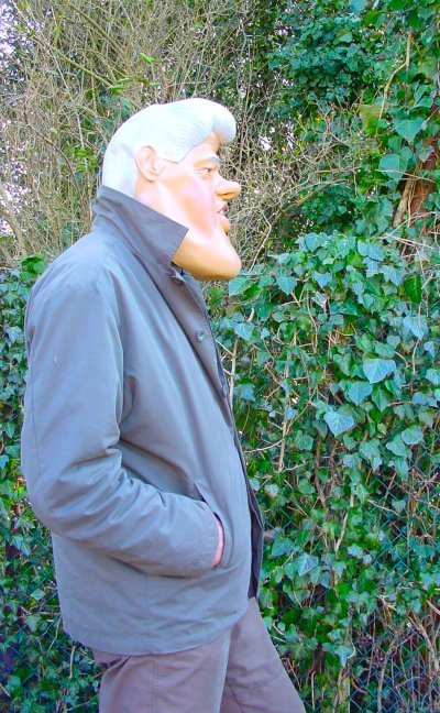 Van opzij is'ie wel goed... Maar loop ik met zo'n gedateerde kop niet verschrikkelijk voor lul? Aan de andere kant: niemand ziet dat jij het bent... Als ik ga, zou dit het eerste jaar zijn dat ik NIET gewoon lekker thuisbleef.