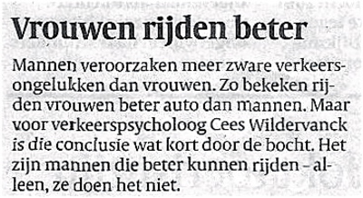 Vandaag trok het bericht dat vrouwen beter auto kunnen rijden dan mannen veel aandacht. De Volkskrant bracht het nieuws over 'een geliefd onderwerp aan de borreltafel' over drie kolommen. 'Volstrekt onjuist,' zegt onderzoeker dr. Nak de Weert, 'in 1998 was het autorijden van vrouwen al geen onderwerp meer aan de borreltafel.' De Weert onderwierp de Nederlandse borreltafel aan een grondig onderzoek. Hij rapporteerde over de grootte en houtsoorten, de borreltafelgenoten, de borrels, de spijzen en de borrelpraat. - Waarom zo'n misvatting over een borreltafelonderwerp?