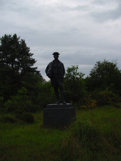 In Bergen, constateerde ik enkele uren eerder, is het zomerseizoen aarzelend begonnen. Volle, maar nog overdekte terrassen. Housegestamp uit een pizzeria. Een gigantische bouwput, die de combinatie Dure Appartementen-Supermarkt-Parkeergarage belooft. In de straat achter de Ruïnekerk, ongeschonden Bergen, zag ik A. Roland Holst uit de Eerste Bergensche Boekhandel komen en met bedaarde pas naar zijn stamcafé wandelen. Zou ik hem aanspreken en attenderen op de avond over zijn vriend Gorter? Durfde ik niet. Nog gauw even naar zee. En in de duinen tussen Bergen en Bergen aan Zee zag ik hem. In de vallende avond, zomerse strooien hoed op, vrolijk zwaaiend met zijn wandelstok. Herman Gorter, die een avondwandeling maakte vanuit zijn eenzame huis in de Verbrande Pan vallei. Hij neuriede zachtjes. Voor geen goud zou ik hem willen storen.