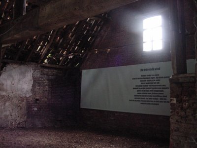 Na drieëneenhalf uur rijden (vanaf Utrecht) sta je op het marktplein van Watou. Wat is hier te beleven? Ogenschijnlijk niets. Een plattelandsdorpje in de Westhoek van Vlaanderen, 1200 inwoners, een handvol huizen, een paar kruispunten. Watou lijkt gauw bekeken. Versnapering op het terras, en door, Frankrijk in. Maar neem een middag de tijd. Betreed het Info-kantoor, koop een kaart en plattegrond en loop de aangegeven route af. Je dwaalt door verlaten huizen, een vervallen boerderij, oude stallen, reusachtige loodsen, een leeg schoolgebouw. En overal staat, hangt, ligt poëzie. Klinken de gedichten, door de schrijvers zelf voorgedragen. Op alle locaties word je geconfronteerd met beeldende kunst. In een groot hol schoollokaal vult Hugo Claus met zijn indringende voordracht de ruimte. In een laantje langs het kerkhof draagt Remco Campert zijn klassieker Lamento voor, zijn stem gaat van boom tot boom. En door merg en been. Je rijdt weg uit Watou met vreemde beelden in het hoofd, die lang op het netvlies blijven. Je zou niet zo gauw een film kunnen noemen, die ooit hetzelfde effect op je heeft gehad. Morgen draagt Hugo Claus op Bieslog zijn grote Watou-gedicht Sporen voor.