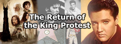 In de VS is een groep actief die protesteert tegen deel twee van de filmcyclus 'In de ban van de ring', getiteld The Two Towers. De actievoerders vinden de titel respectloos ten aanzien van de slachtoffers en nabestaanden van de Elf September- aanslag. Het derde deel van De Ring gaat heten 'The Return of the King'. Nu is een harde kern van Elvis Presley-fans in het geweer gekomen. Welke site is echt, welke parodie? Een tekstvergelijking van de sites maakt dat (iets te) snel duidelijk.