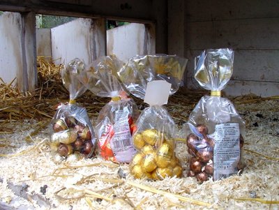 Dit jaar ligt een overdaad aan chocolade-eitjes in de schappen. Op diverse strategische punten in de supermarkten staan rekken met honderden bontgekleurde zakjes met eitjes opgesteld. Waar komen al die eitjes vandaan? Een vraag die te weinig wordt gesteld, volgens de Chocoladedieren Bevrijdings Brigade. 'Weerzinwekkend,' zo vat een woordvoerster de toestanden samen die in de chocoladelegbatterijen zouden heersen. 'De chocoladekipjes die voor de paaseitjes moeten zorgen, worden vanaf februari gedwongen tot een krankzinnig hoge legproductie.' Die productie lijkt nog steeds te groeien. Was in vroeger tijden uitsluitend een keuze uit pure of melkchocolade-eitjes mogelijk - de witte chocolade-eitjes bleven een exclusieve luxe - de verwende consument wenst nu ook cappuccino-, mokka-, of praline-eitjes in het assortiment. 'Men heeft geen idee wat voor leed de chocoladelegkipjes moeten ondergaan. De kipjes worden in een houdgreep genomen, waarna liters cappuccino of kilo's mokka via trechtertjes in de bekjes van de chocoladekipjes worden gepropt.' De tendens van een dalende vraag naar biologische producten tekent zich ook in de Paasindustrie af. We hebben dit jaar geen enkel chocoladescharreleitje kunnen vinden. Op eerste Paasdag zal de Chocoladedieren Bevrijdings Brigade acties in de illegale chocoladelegbatterijen uitvoeren. 'We zullen zoveel mogelijk chocoladekipjes en eitjes meenemen. Na omsmelting maken we er chocoladekerstkransjes van, die we eind dit jaar gaan uitdelen aan armen, zieken en behoeftigen.'