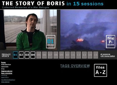 Een nieuw internetproject dat er zeer interessant en veelbelovend uitziet. Uit het persbericht: 'FlimFilm presenteert The Story of Boris, het verhaal van een oorlogsvluchteling die probeert te ontrafelen wat er is gebeurd in de oorlog waaraan hij is ontsnapt. Was hij dader of slachtoffer? Goed of slecht? Een observatiecamera registreert de sessies van de vluchteling bij zijn psychiater. In The Story of Boris wordt op een vernieuwende manier de werking van PTSS (Post Traumatisch Stress Syndroom) blootgelegd. Elke week worden er nieuwe sessies en ander belangrijk beeldmateriaal gepubliceerd, zodat in 12 weken een indringend dossier ontstaat. De bezoeker van de website krijgt zo de mogelijkheid het verhaal van Boris zelf te doorgronden.' Vanaf vandaag online.