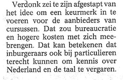 Dat het zo niet langer ken is duidelijk. Dat hebben ze bij de politiek ook in de gaten gekregen. Dat alle buitelanders verplicht goed nederlands moeten kennen is dan ook van harte toe te juigen. Ook dat de regering veel overlaat aan het particulier initieatief is een goed ding. Door konkurentie kunnen de prijzen lekker laag blijven. Vandaar dat wij met groot genoegen kunnen presenteren: MMOI - Mike van der Molens Onderwijsinstelling. Wij lijden buitelanders van alle leeftijden op voor het staatseksamen Inburgering. Weet u buitelanders bij u in de buurt die geen woordje nederlands kennen spreken wijst u hun dan de weg naar onze Instelling. Wij geven les tegen de onwaarschijnlijk lage prijs van 59,99 euro per uur. De lessen worden door een deskundige gegeven. Ik was jarenlang uitsmijter in de horeca, heb dus veel ervaring met buitelanders. Ook was ik standup-komiedian, dus googelaar met taal zeg maar. De MMOI? Dat zit wel snor! Beleefd aanbevelend, Mike van der Molen, directeur/leraar MMOI