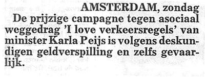 - Dus hij is alleen maar de mascotte van de zware jongens?'Lachen geblazen! Ja, en... hij is goed van betalen. Als je met Petertje spreekt, hou je d'r een aardig zakcentje aan over. Want toen ging'ie voor de televisie werken, nou, toen werd Peter voor ons interessant. 'Goeie tip voor je, Peter! 500 euro!' En hij meteen betalen. Is geld van SBS6, dus dat kan wel lije.