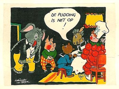 Zo speelde ik, al ver voor de komst van het medium in Nederland, televisietje voor mijn vader en moeder. (Wat is het toch bevredigend als je kunt zeggen dat 'het er altijd al heeft ingezeten'!) De tekst bij het hier vertoonde Flipje-plaatje (nummer 10, van serie 6): Ten slotte waren ze dan thuis. Maar jongens, wat een strop! Daar was het eten net gedaan En alles was schoon op.