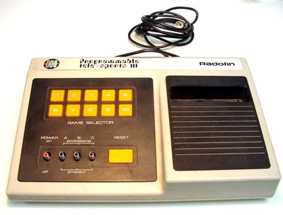 Maar als ik nog tien jaar wacht, kan ik deze 'Radofin Programmable tele-sports III' bij Sotheby voor een gigantisch bedrag laten veilen. (Je zou bij aanschaf van een apparaat altijd een tweede bewaarexemplaar moeten kopen dat ongeschonden in de verpakking blijft zitten.) Ping Pong spelen op de televisie - ik heb het misschien een paar keer gedaan. Dat je kon kiezen voor 10 varianten en tussen een amateur- of professionalstatus, was aan mij niet besteed.