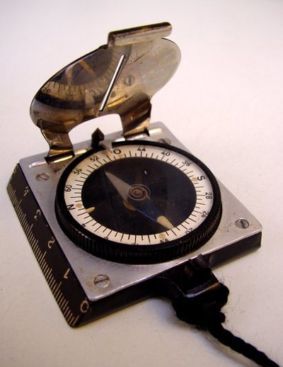 Ik bewaar hem nu al meer dan een halve eeuw, maar echt nodig heb ik hem nooit gehad. Als twaalfjarige leerde ik hoe je hem moest gebruiken en ik weet het nog precies. Af en toe haal ik hem ?s uit de la van mijn bureau, ga voor het raam staan, breng hem naar mijn ogen, richt het vizier (dat metalen puntje op de bovenste rand) op een lantaarnpaal buiten, draai de ring zodanig, dat het gele puntje van het Noorden gelijk ligt met het wiebelende gele puntje van de naald en lees in het openstaande, spiegelende dekseltje de richting af, die het vizier aangeeft. Waar in Nederland bestaat de kans dat ik hopeloos zou kunnen verdwalen en mijn vizierkompas me redt van een wisse uitputtingsdood?