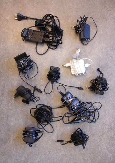 In korte tijd krijg ik er elf op de foto bijeen. En dan heb ik de staande voor de mobiele handsets niet meegerekend, dat zijn er ook nog ?s vijf. Ik heb zestien opladers in huis. Er zit een universele lader bij, waarmee je apparaten van 1.5 volt en 3, 4.5, 6 enz. kunt voorzien, dus waarom gooi ik er niet een heleboel weg? Dat doe je niet. Je bewaart ze, want je kunt niet weten... Ze zien er ook gewichtig uit. Hoe ouder hoe zwaarder. Wacht maar, ooit doet een verzamelaar een schitterend bod: ?Allemachtig! U hebt nog een 5-4065A Power Supply? Daar zijn er in heel Europa nog maar drie van!? Van vier opladers weet ik welke apparaten erbij horen - de overige wachten op... ja, waarop? In heel Nederland wachten miljoenen opladers op de Nationale Oplader Inleverdag, 12 november 2009.