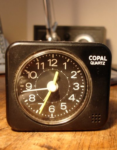 Het was ?Quartz gestuurd? - wat dat ook mocht betekenen - en het liep een vol jaar op één batterijtje. Mijn Amerikaanse wekkertje staat nog altijd op het kastje naast mijn slapende hoofd. Al 27 jaar piept het mij wakker - niet met sluimerfuncties zus en me zo, niet met zachte radiomuziek - het wekkertje piept hoog, doordringend, langdurig en doeltreffend. Binnenkort komt de avond waarop ik het wekmechanisme een uur later dan gebruikelijk zal afstellen. Als de tienduizendste dag aanbreekt waarop het wekkertje dienst moet doen, mag het uitslapen.