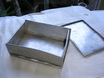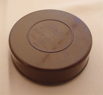 Uit de vele reacties op mijn broodtrommelherinnering bleek al dat hij echt heeft bestaan, maar een fotobewijs bleef uit. Tot Gerda Bruijn haar kleindochter de kelder liet opruimen en bijgaand trommeltje tevoorschijn kwam. Ja, dat is 'm! De op- en inklapbare wandjes op scharnieren, de losse deksel - je sluit de gevulde trommel af met een elastiek (weckring) erom en zo gaat'ie in de tas of onder de snelbinders. Gelukkig - het echte trommeltje doet niet onder voor de trommel uit de herinnering. 'Mijn oude trommeltje, eindeloos gebruikt', schrijft Gerda Bruijn. Ik denk erover de foto's uit te printen, in te lijsten en op te hangen.