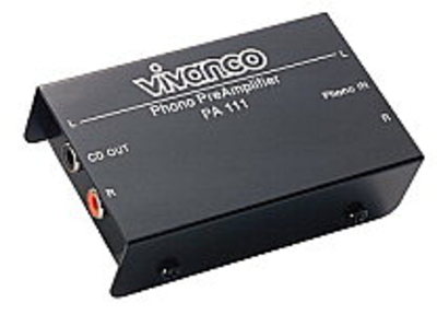 Er zijn nog vele vinylliefhebbers die genieten van hun oude platen, compleet met ruis en tikken, zo is me gebleken. Dank aan de mailers die mij melden hoe eenvoudig het is een platenspeler aan te sluiten op een moderne geluidsinstallatie: zet er een versterkertje voor. Een voorversterkertje dus. Overal te krijgen en niet duur. Bijgaande draaitafel vond ik begerenswaardig - uitgerust met USB, kun je je platen via een geluidsinstallatie draaien, maar ook meteen in de computer (en dus iPod) invoeren.