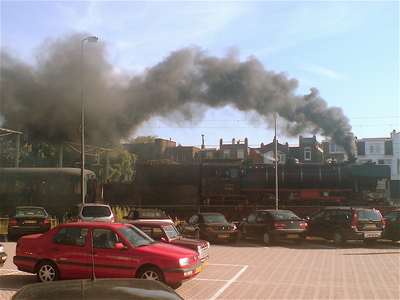 Vanmorgen, op weg met bestemming Amsterdam, zag ik 'm staan op mijn station: een stoomlocomotief, met een lange rij antieke wagons achter zich aan. De rookpluim was diepzwart en ik snoof gretig de vergeten geur van brandende kolen op.